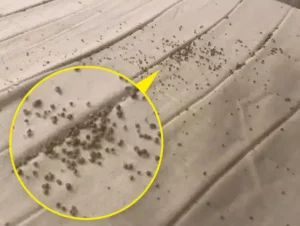 6. “Found these tiny round brown grains on top of a second mattress cover, right below my husband’s pillow. We have cats, but it’s not the same color as their litter.”