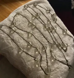 7. “It’s a 16 inches chain, glass balls the size of a small fist, weighs maybe 30-40 lbs.”